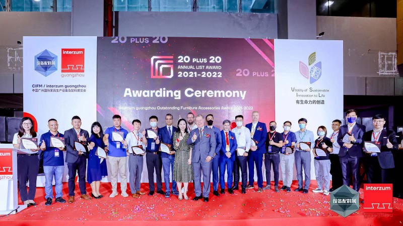 7 月 26 日早上 10 点, 20 PLUS 20 暨 VSIL 论坛启动仪式、 20 PLUS 20 颁奖典礼现场响起了连绵不断的掌声,20 家获奖企业在万众瞩目下接受荣耀表彰。20 PLUS 20 卓越家具辅料大奖,起源于全球家具制造业高级别奖项——“interzum Award”,经过 5 年的积蓄沉淀, 逐渐成为亚洲家具业的风向标。本届奖项以“寻找有生命力的家具辅料”为主题,邀请了 Spierenburg Studio 创始人、 imm创意总监 Dick Spierenburg 先生,以及 HAUTE INNOVATION 创始人、欧洲知名材料 专家 Sascha Peters 博士作为特邀顾问,从创新性、可持续性、安全性、实用性等方面,评选出“2021-2022 年度卓越辅料产品榜单” 。20 件获奖产品将于现场的特别陈列区中连续展出四天,为家具制造商、设计师、定制师们提供权威的家具及室内装饰材料参考,赋予畅想新构思的灵感。