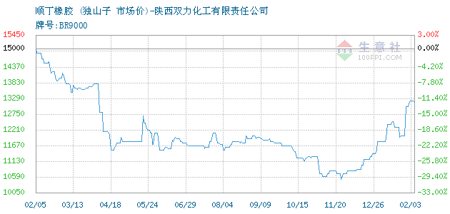 10月09日独山子关于顺丁橡胶的报价为12700元/吨。顺丁橡胶的规格:牌号:BR9000。该报价有效期为3天。报价提供方:陕西双力化工有限责任公司。 拓展浏览资讯: