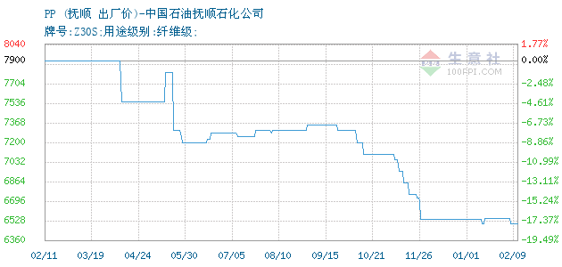 11月10日抚顺石化关于PP的报价为8000元/吨。PP的规格:牌号:Z30S;用途级别:纤维级;。该报价有效期为3天。报价提供方:中国石油抚顺石化公司。 拓展浏览资讯: