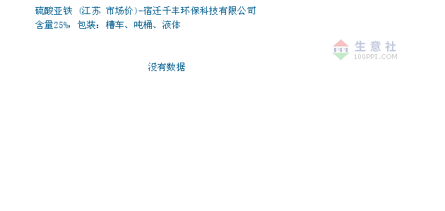 11月23日江苏关于硫酸亚铁的报价为450元/吨。硫酸亚铁的规格:含量25%,包装:槽车、吨桶、液体。该报价有效期为3天。报价提供方:宿迁千丰环保科技有限公司。 拓展浏览资讯: