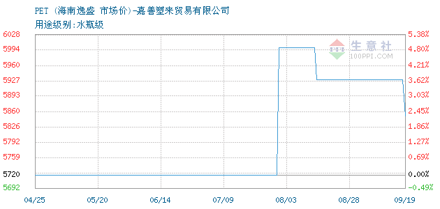 11月25日海南逸盛石化有限公司关于PET的报价为7050元/吨。PET的规格:用途级别:水瓶级。该报价有效期为1天。报价提供方:嘉善塑来贸易有限公司。 拓展浏览资讯: