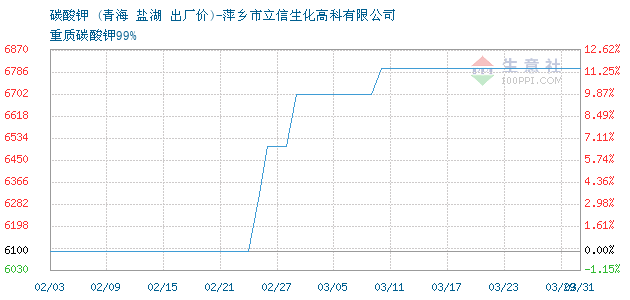 12月18日青海 盐湖关于碳酸钾的报价为8100元/吨。碳酸钾的规格:重质碳酸钾99%。该报价有效期为3天。报价提供方:萍乡市立信生化高科有限公司。 拓展浏览资讯: