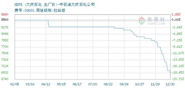 03月06日中石油大庆石化公司关于HDPE的报价为8700元/吨。HDPE的规格:牌号:5000S;用途级别:拉丝级。该报价有效期为3天。报价提供方:中石油大庆石化公司。 拓展浏览资讯: