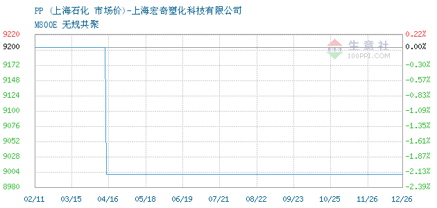 05月02日上海石化关于PP的报价为8550元/吨。PP的规格:M800E 无规共聚。该报价有效期为3天。报价提供方:上海宏奇塑化科技有限公司。 拓展浏览资讯: