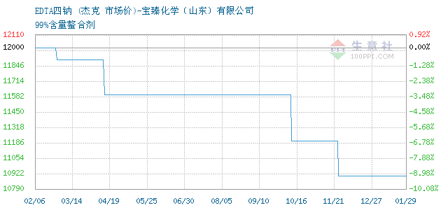 05月08日杰克关于EDTA四钠的报价为18700元/吨。EDTA四钠的规格:99%含量螯合剂。该报价有效期为3天。报价提供方:宝臻化学(山东)有限公司。 拓展浏览资讯: