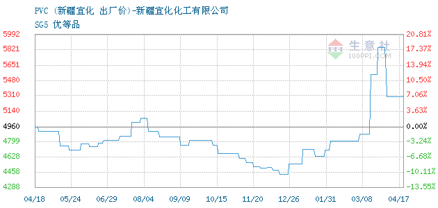 2023年6月10日新疆宜化PVC为5750元_化工塑料_行情_绿色建材网