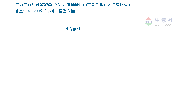 06月10日怡达关于二丙二醇甲醚醋酸酯的报价为15000元/吨。二丙二醇甲醚醋酸酯的规格:含量99%,200公斤/桶、蓝色铁桶。该报价有效期为3天。报价提供方:山东夏为国际贸易有限公司。 拓展浏览资讯: