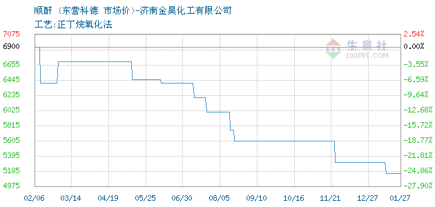 06月30日东营科德关于顺酐的报价为6200元/吨。顺酐的规格:工艺:正丁烷氧化法。该报价有效期为3天。报价提供方:济南金昊化工有限公司。 拓展浏览资讯: