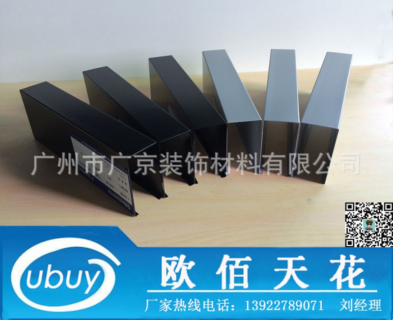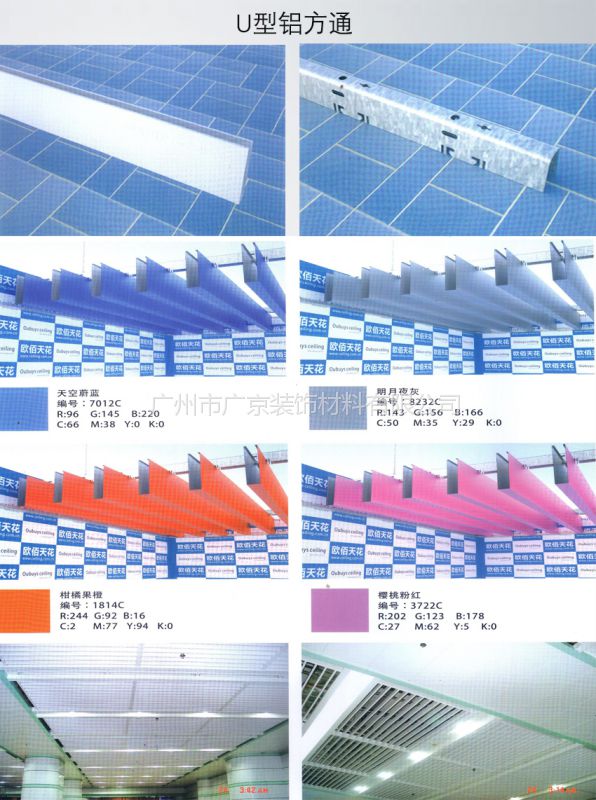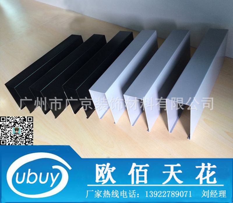 欧佰铝方通天花分为U槽型方通及型材方通,U槽型方通原材料为铝板/铝卷,经开料切割后机器折压成型,形成U槽型铝方通,其规格可任意生产;型材铝方通原材料为铝锭,经过型材模具拉出后成型,故型材方通长宽受模具限定,只能生产常规尺寸的方通。欧佰铝天花厂有30年的天花生产经验,积累了市面上所有常规的铝型材模具,能满足各种客户的需求。