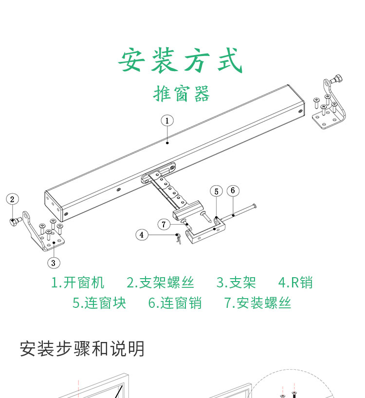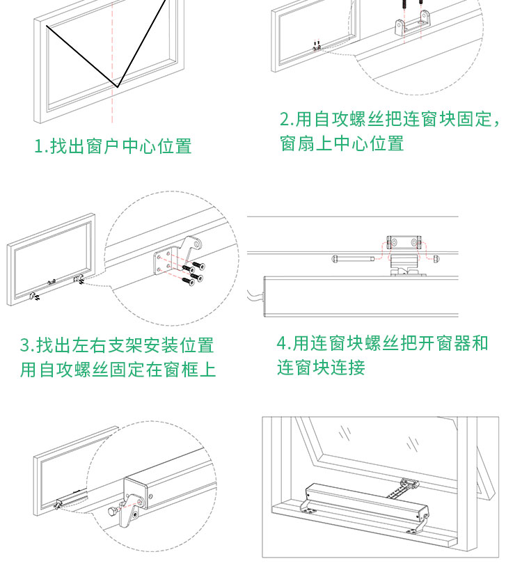 5.适用于开启各种各样的上、中、下悬窗、天窗、推拉窗、平开窗以及点式玻璃幕墙;