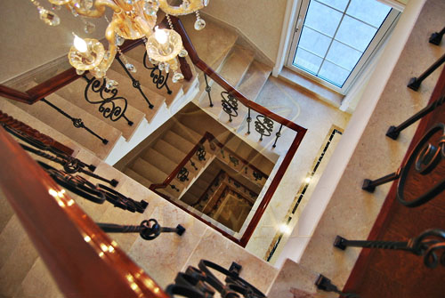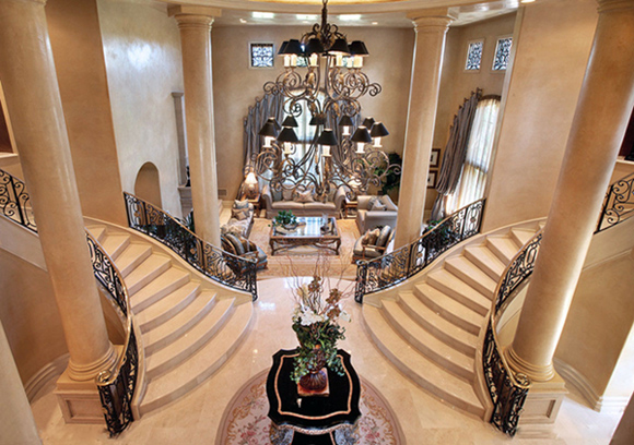 在一栋豪华别墅中,安置在空间内部的楼梯不光是连接上下层的过渡地带,也是室内精美的造型艺术。一个能撑起整栋别墅大气的楼梯,历来以气势取胜。