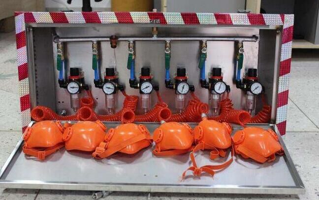AYH-1A压风自救器是一种固定式性自救装备,用于具有煤yu瓦斯突出的煤矿井下救灾防护,安装在有人工作的场所及人员流动的井巷或峒室,也可安装在掘进和回采工作面。当发生煤和瓦斯突出预兆时,工作人员可就近进入自救装置,打开压气阀避灾。