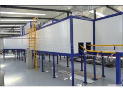 喷塑线:上件—喷淋前处理—水分子脱水烘干—冷却—喷塑(喷粉)—烘干固化(20min、180℃-220℃)—冷却—检测—下件