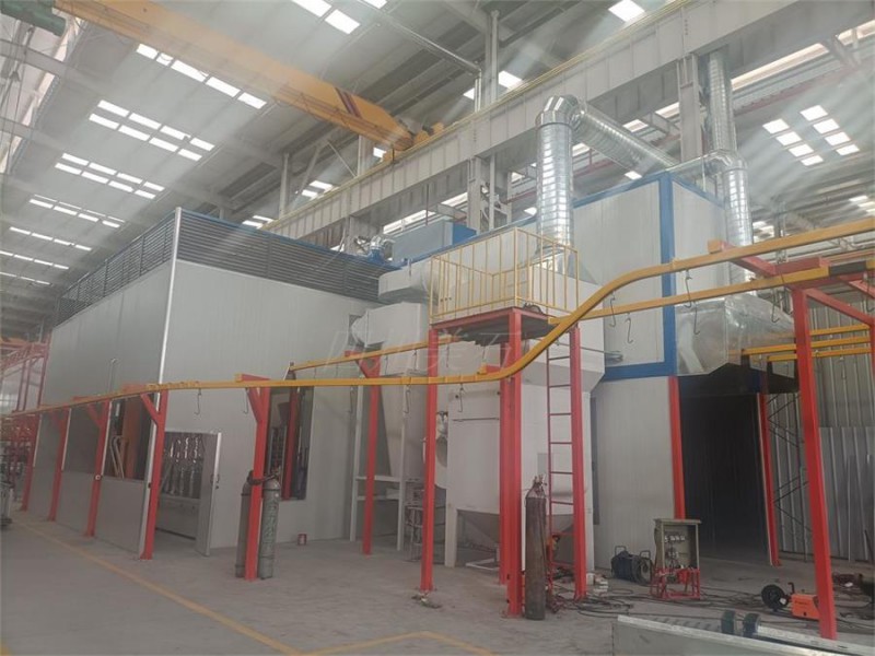 喷塑流水线主要配套设备:悬挂链输送设备,不锈钢喷淋清洗剂,脱水烘干炉,喷粉房,自动喷涂机,升降机,隔离房,燃烧室,固化烘干炉,废气处理设备,废水处理设备等。