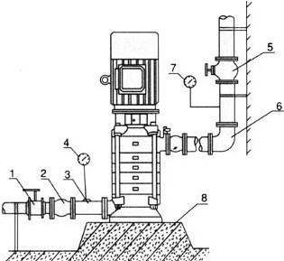 6、用于有吸程场合,进水管端应装有底阀,并且进口管路不应有过多弯道。同时不得有漏水、漏气现象存在。