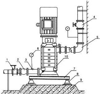 | 5 | 闸阀 | 6 | 止回阀 | 7 | 压力表 | 8 | 水泥台座 | 6 | 泵 | 7 | 联接板 | 8 | JGD型隔振器 | 9 | 水泥台座 | 10 | 泵 |